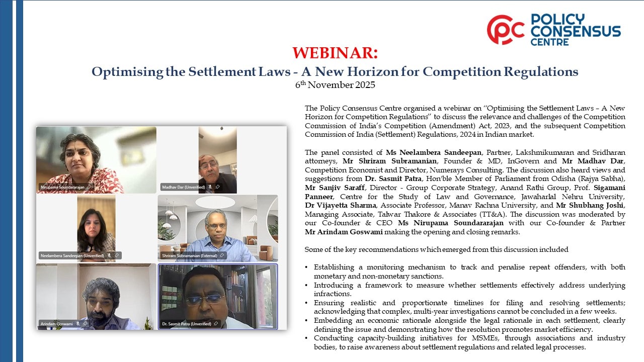 The Policy Consensus Centre organised a closed-door discussion with Mr Praveen Kamat, General Manager, International Financial Services Centre Authority (IFSCA) on 3rd May 2024 at Gandhinagar (Gujarat). The discussion was attended by members of the web3 sector, experts from banking and financial services industry, members of legal fraternity, and academia. Our co-founders, Ms Nirupama Soundararajan and Mr Arindam Goswami presented the findings from our new report titled “Creating a Risk Mitigation Framework for Virtual Digital Assets in India” and Mr Dilip Chenoy, Chairman, Bharat Web3 Association made a presentation on the web3 sector.